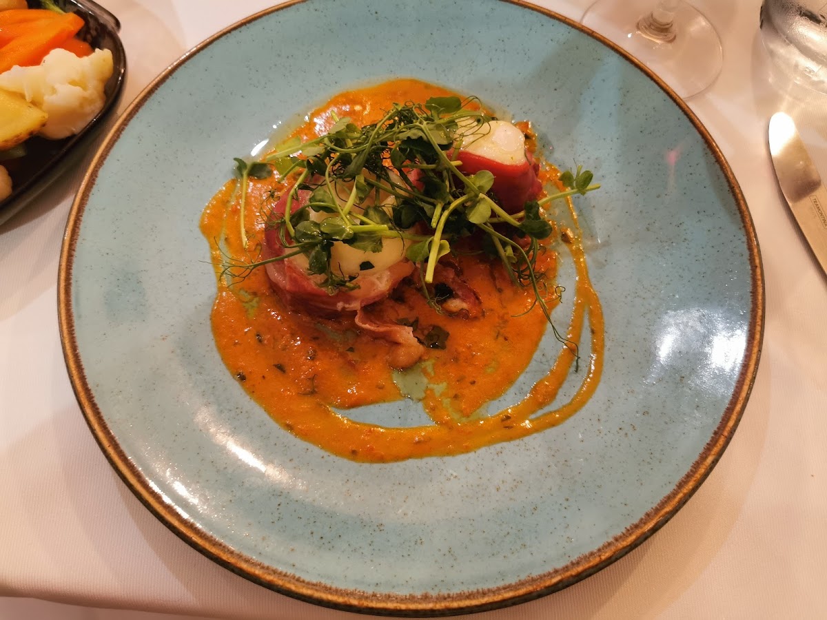 Chicken main course was advertised as being finished with a sage butter sauce. Unfortunately there was not a hint of sage present. Apart from that little disappointment everything was good.